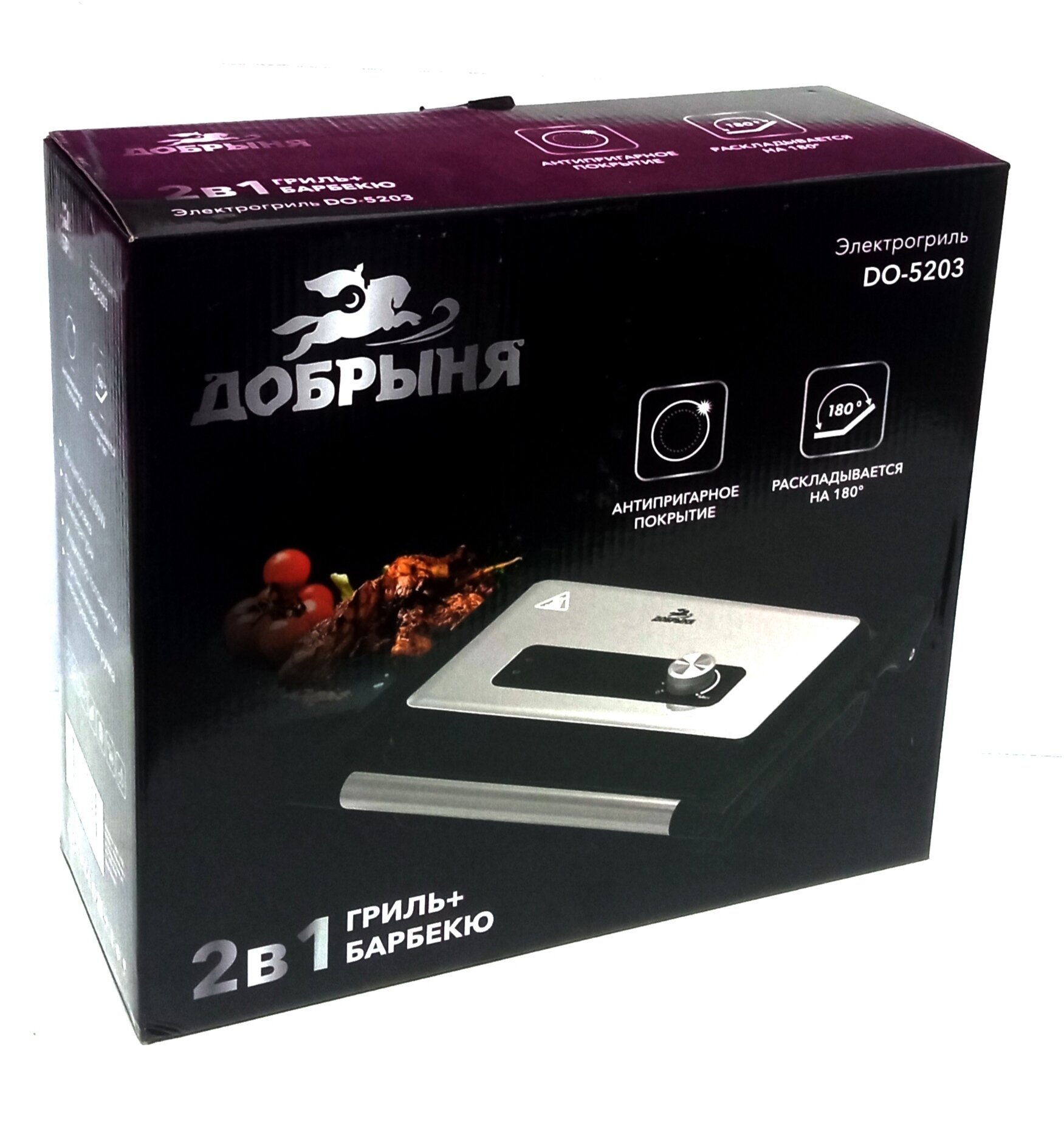 Гриль электрический Добрыня DO-5203 2-в-1 гриль+барбекю (черный) информация: