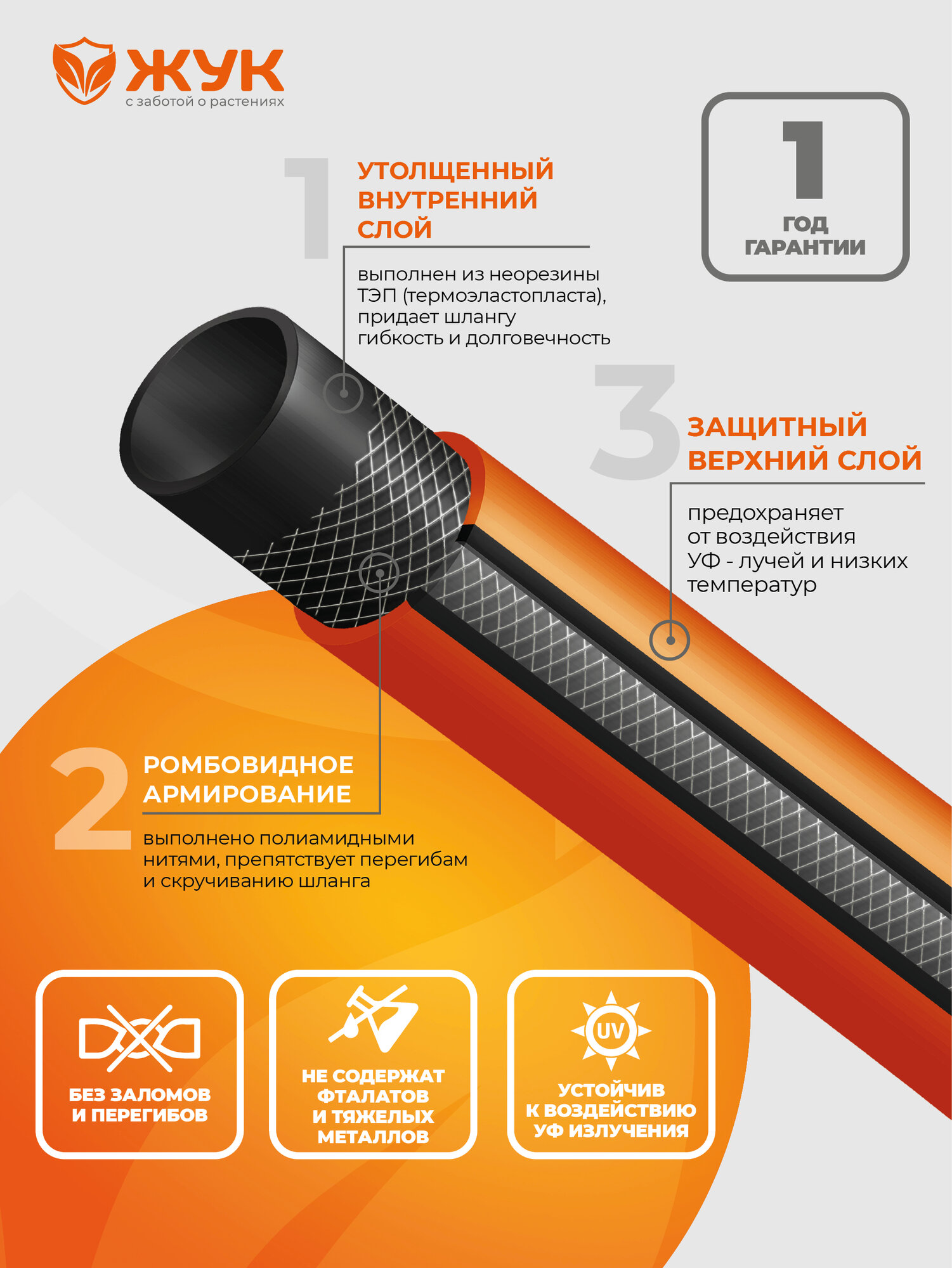 Шланг поливочный Жук Классик 3/4" 3-х слойный (бухта 25 метров) информация: