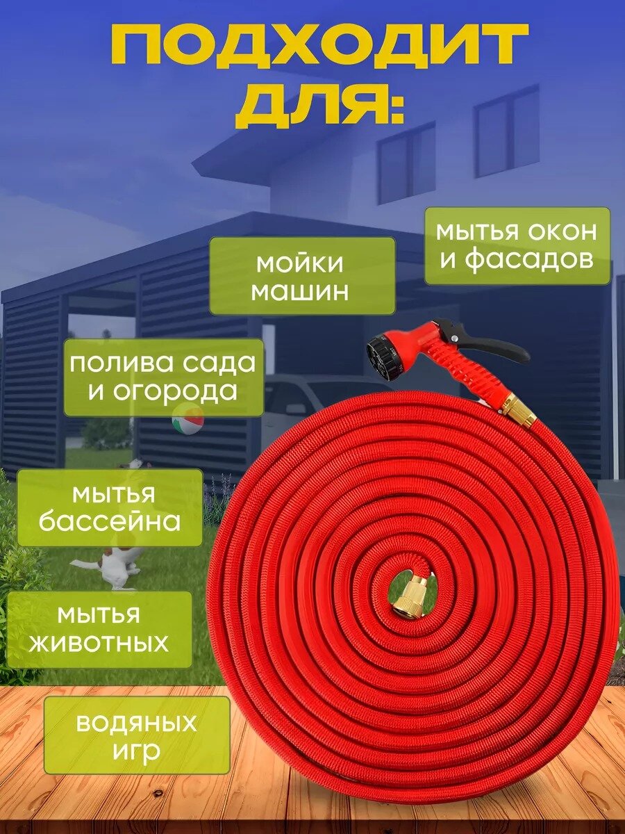 10 цен на Шланг садовый поливочный растягивающийся 100метров, с фитингами и распылителем