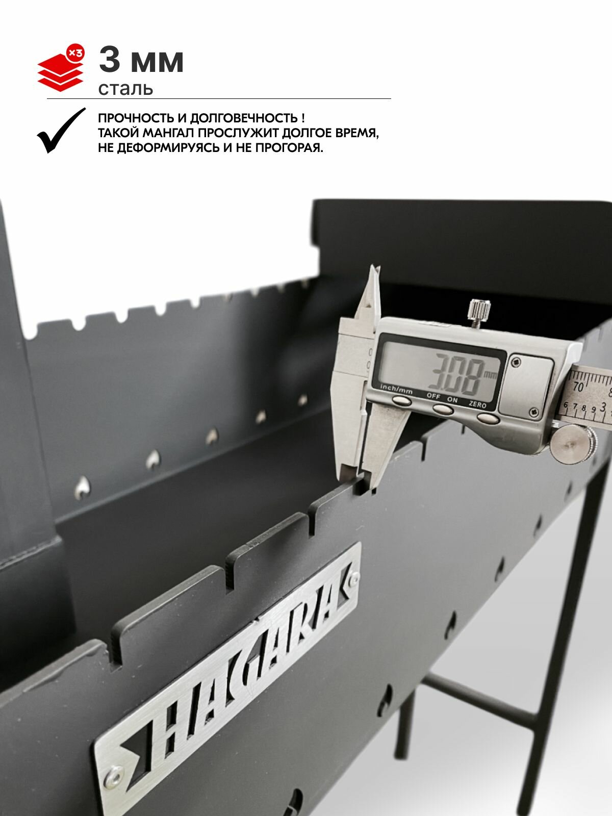 Мангал 800 мм. с полкой-решёткой и полкой под казан, сталь рифленая-усиленная 3 мм. разборный, с полкой под дрова