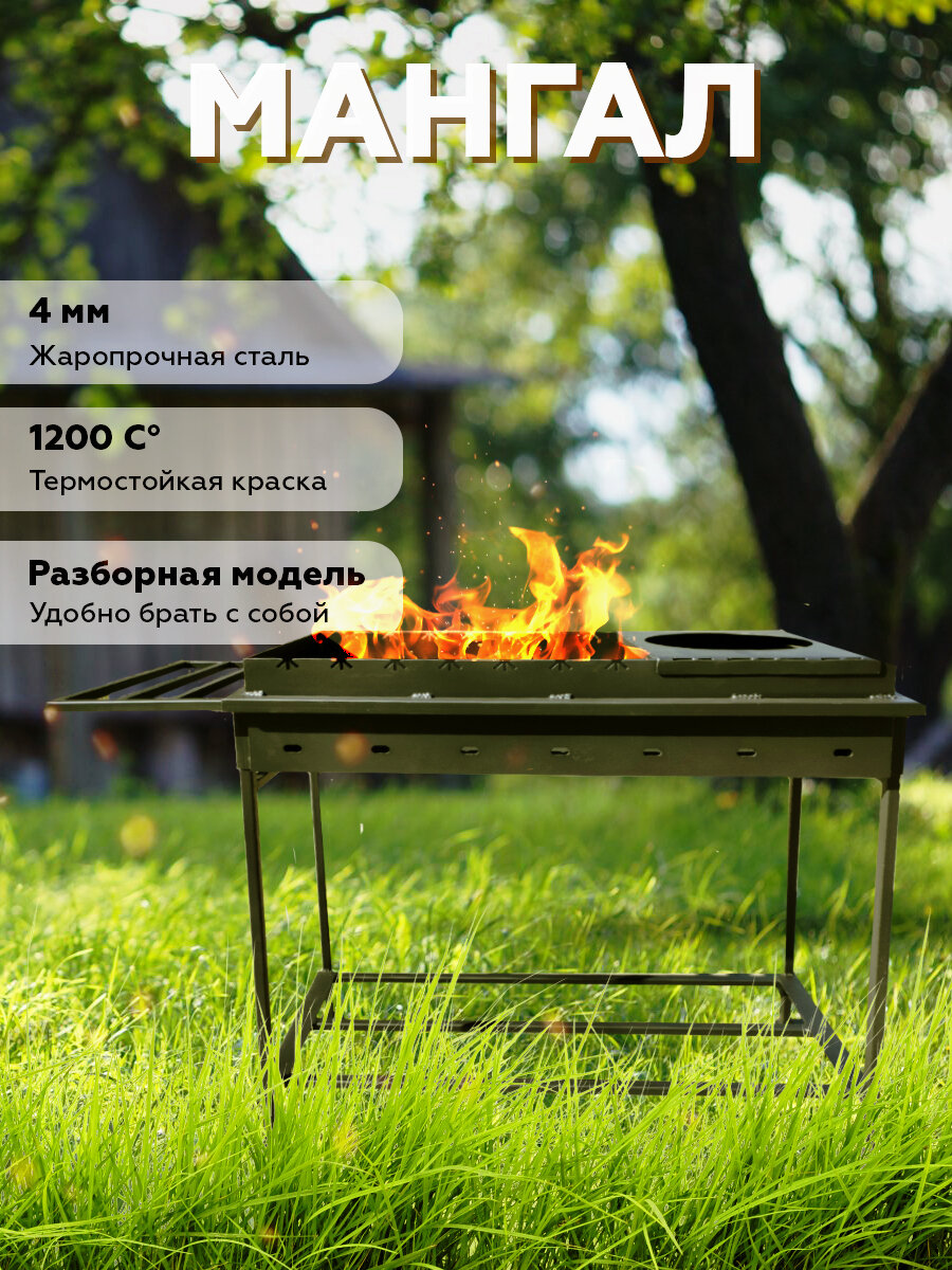 10 цен на Мангал 4 мм с подставкой под казан, полкой для дров, боковым столиком