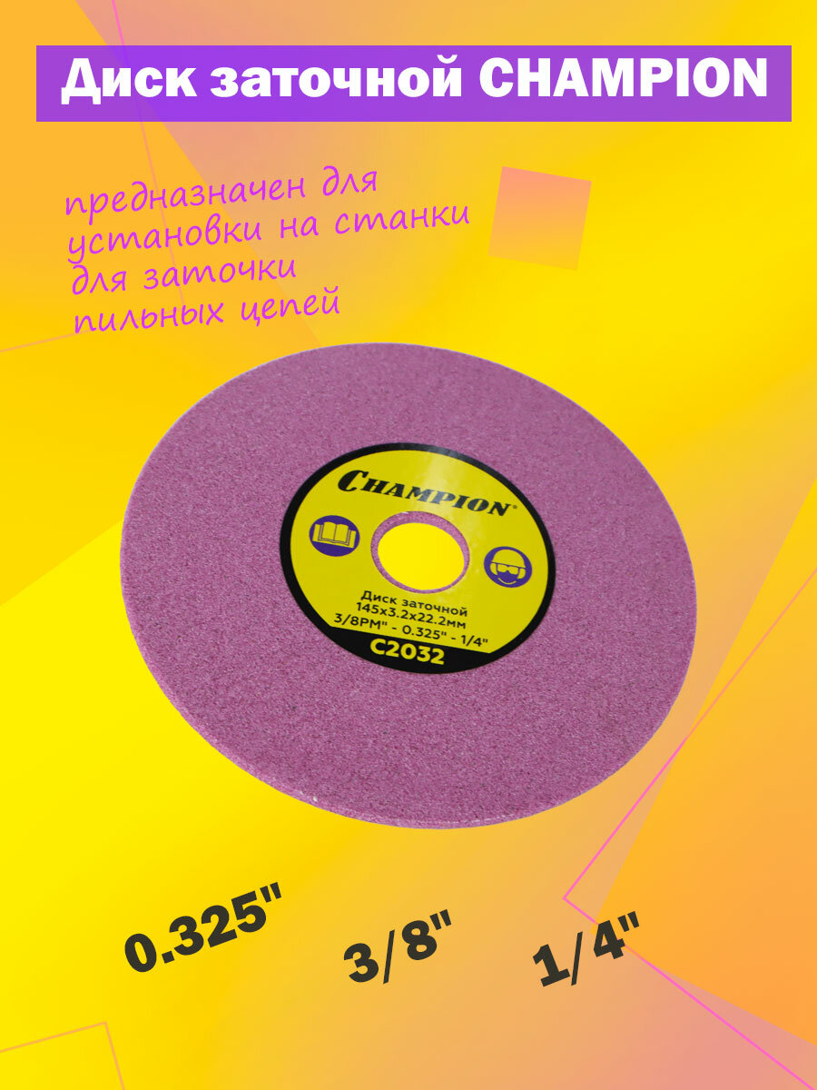 Диск заточной CHAMPION C2032 для C2001 145х3,2х22,2мм информация: