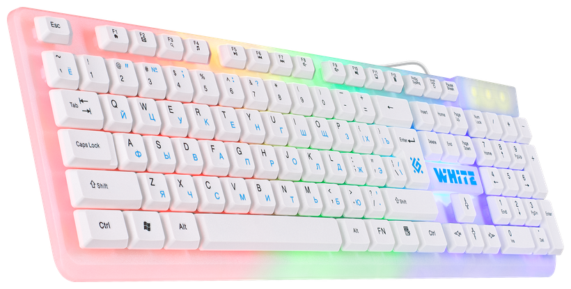 Отзывы на Клавиатура Defender Dark White GK-172,игровая, проводная, подсветка, 104 клавиши,USB, белая