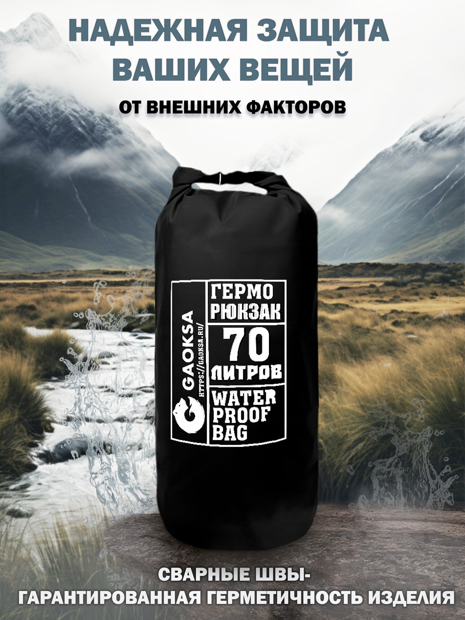Водонепроницаемый герморюкзак черный 70 л. информация:
