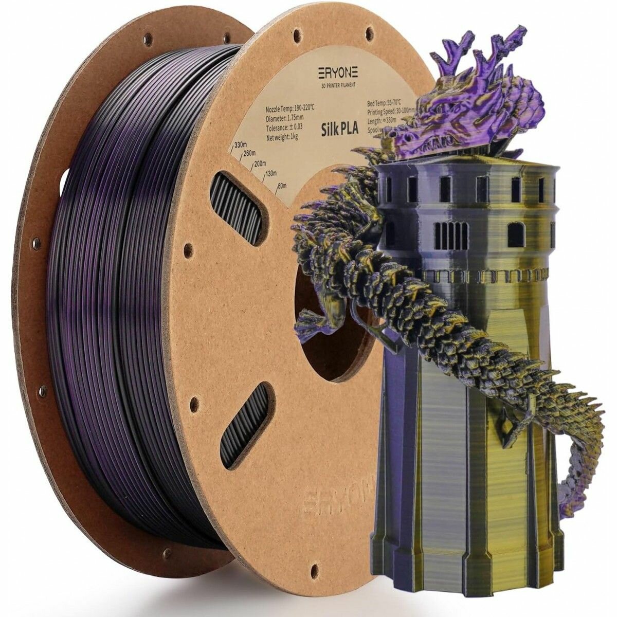 10 цен на PLA Silk Tri-Color 1,75 мм 1 кг (Eryone) Черный - Золотой - Фиолетовый