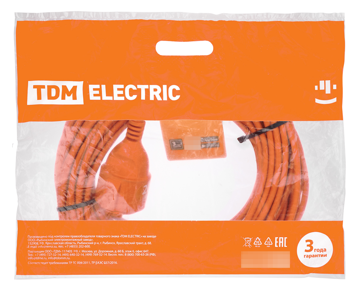 Удлинитель TDM ELECTRIC УЛ03 (SQ1303-0232), 3 розетки, с/з, 16А / 3500 Вт