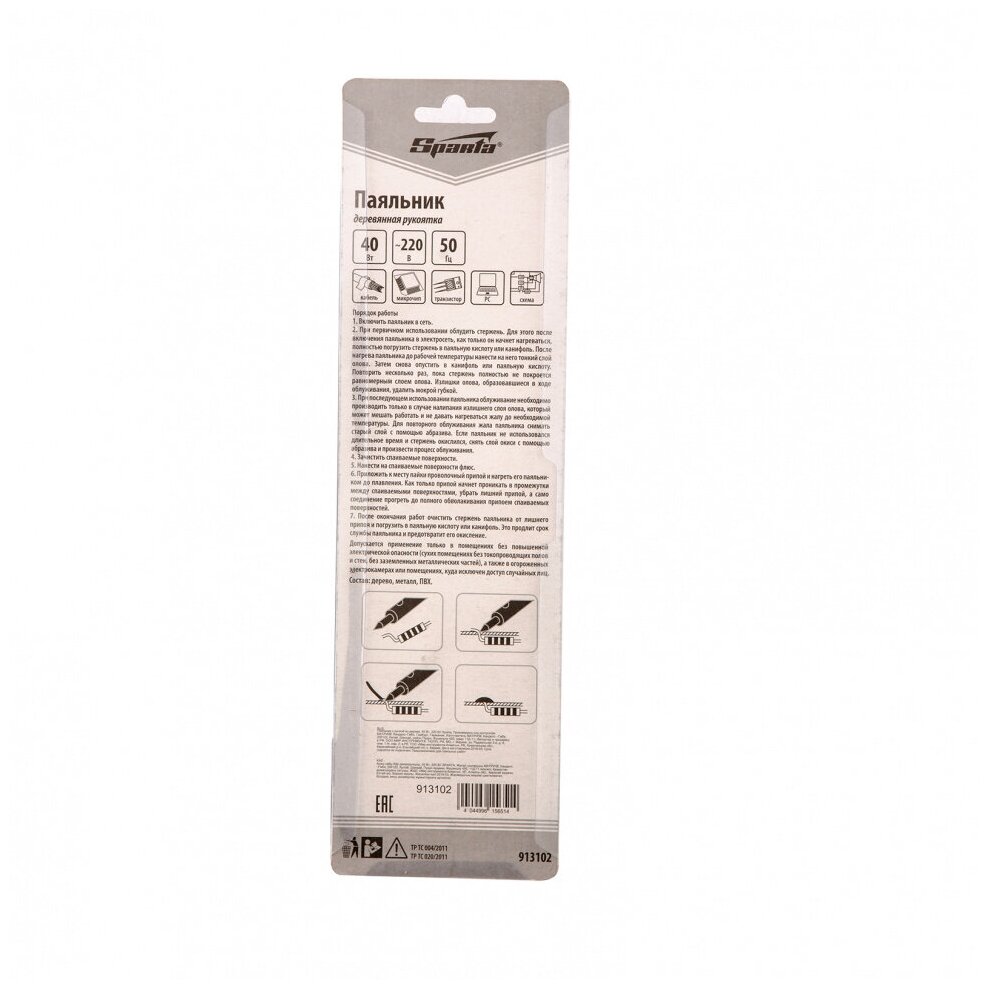 Паяльник с ручкой из дерева 40 Вт 220 В Sparta информация: