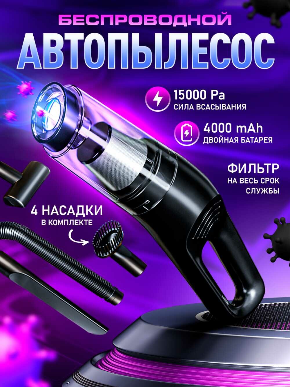 Автопылесос беспроводной аккумуляторный черный 2000Ра информация: