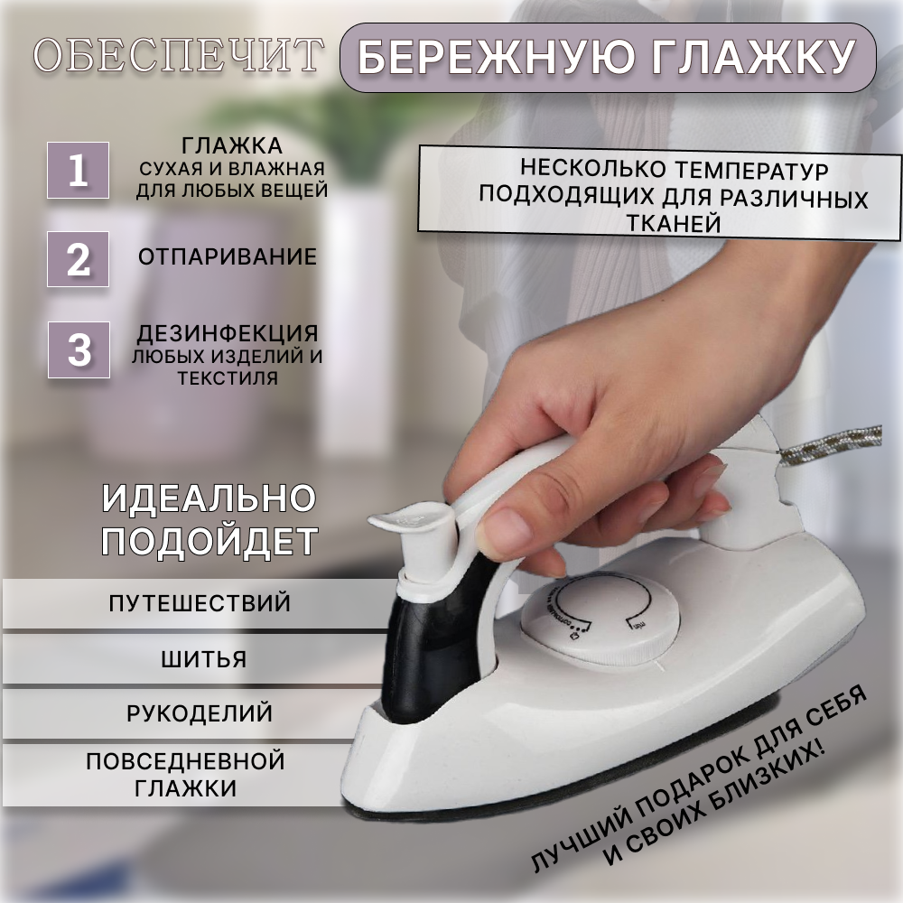Отзывы на Мини утюг дорожный, портативный с керамической подошвой, 800 ВТ, чёрный