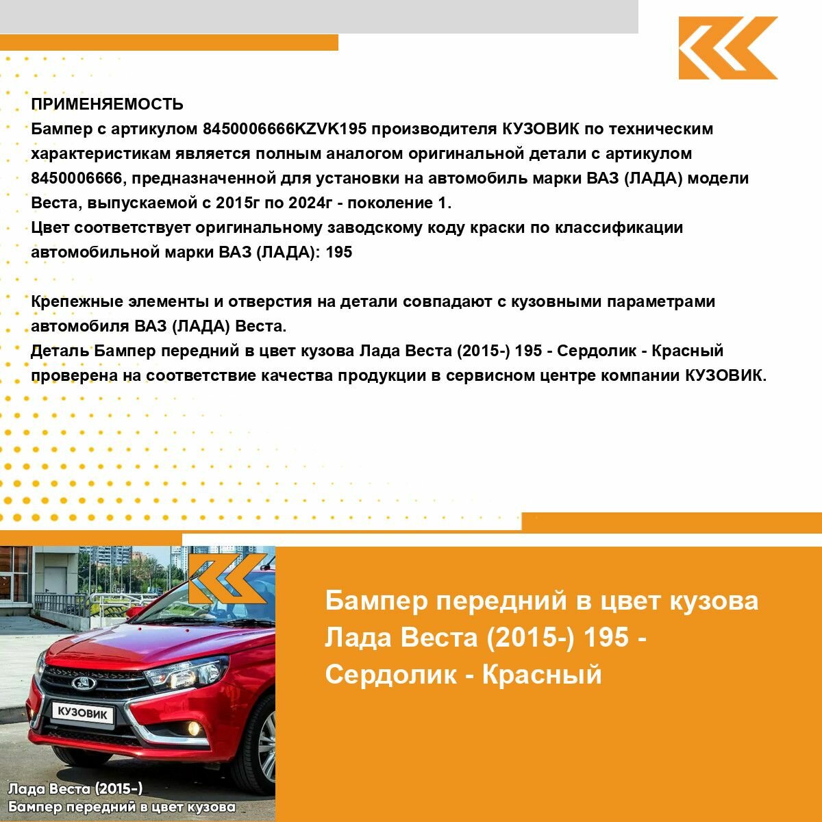Бампер передний в цвет кузова Лада Веста 195 - Сердолик - Красный информация: