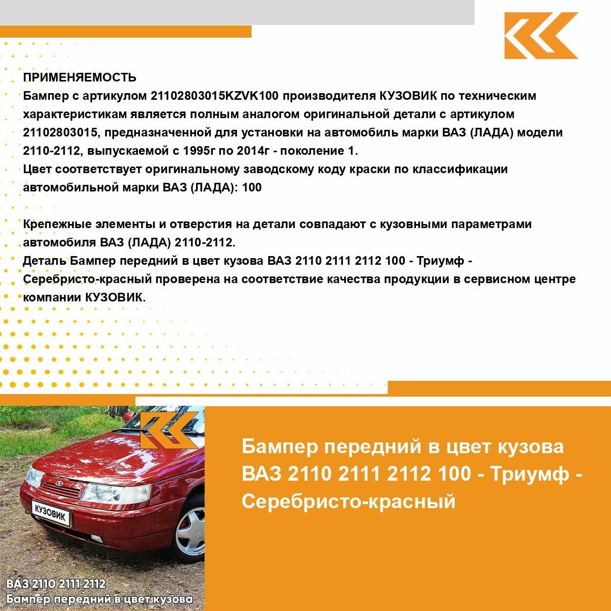 Бампер передний в цвет кузова ВАЗ 2110 2111 2112 100 - Триумф - Серебристо-красный кузовик информация: