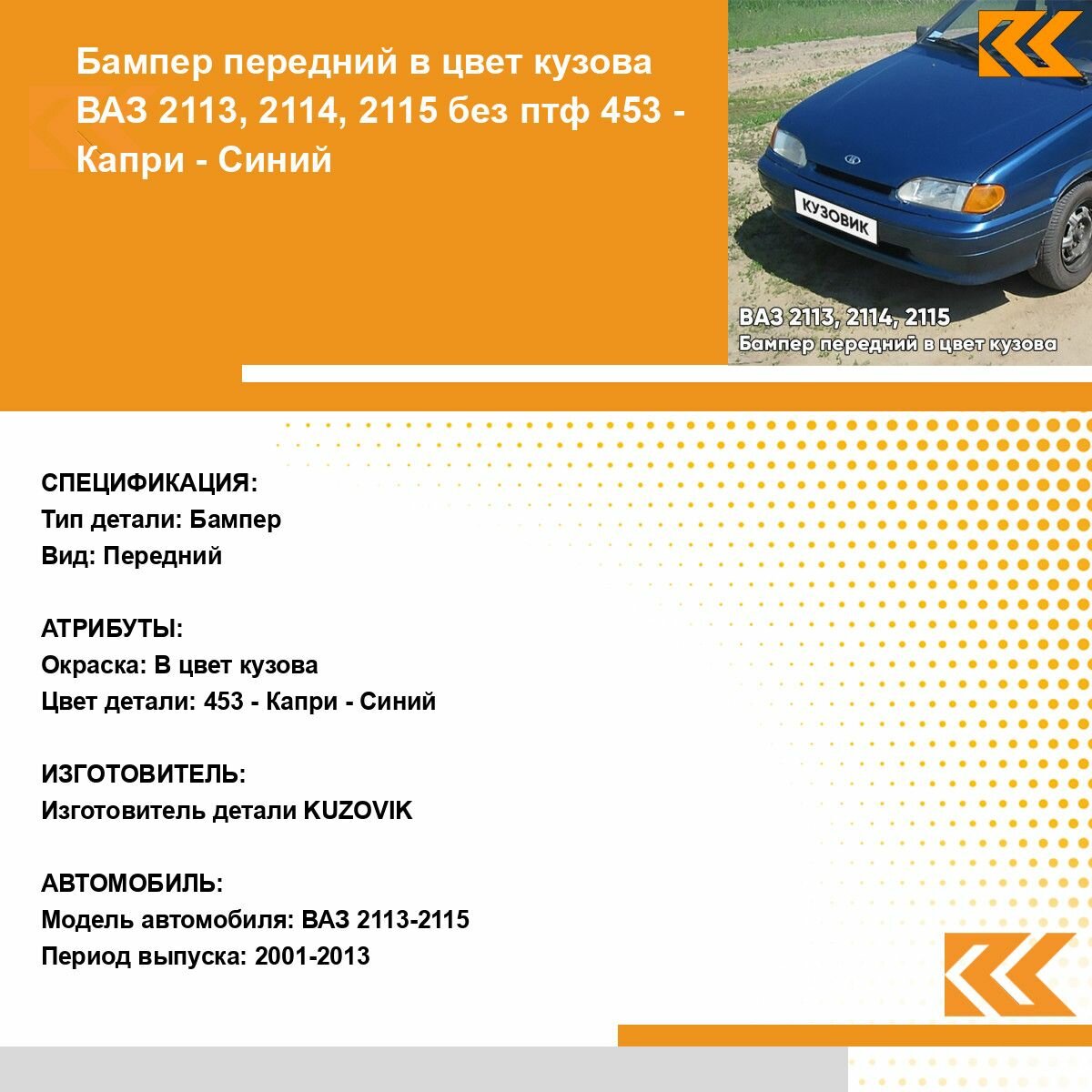 Бампер передний в цвет кузова ВАЗ 2114 2115 2113 без птф 453 - Капри - Синий информация: