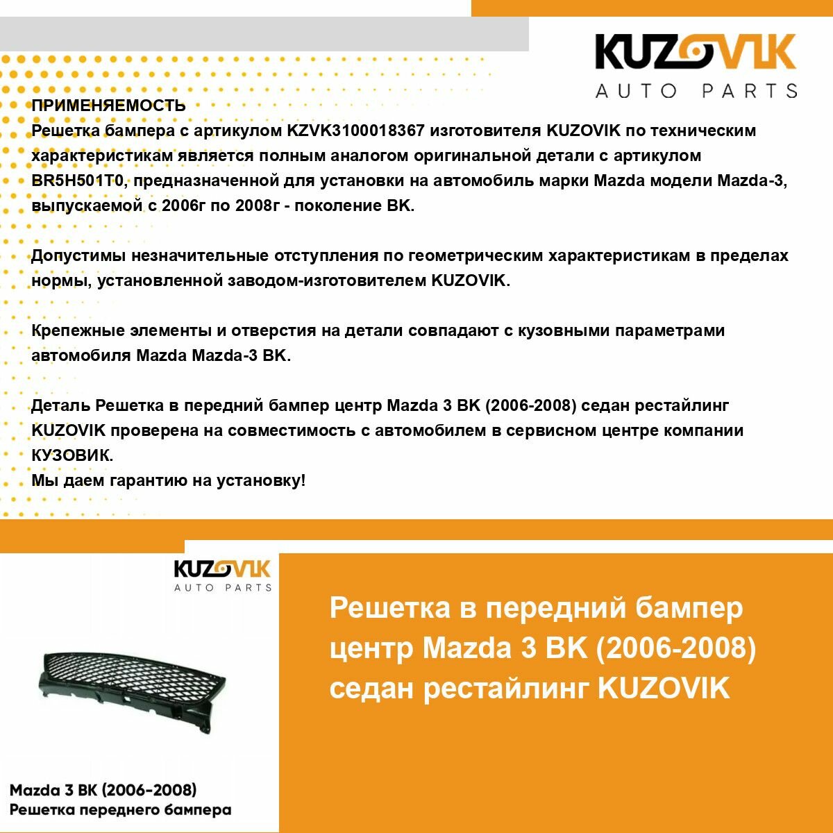 Решетка переднего бампера Mazda 3 BK Мазда 3 ВК (2006-2008) седан рестайлинг нижняя информация: