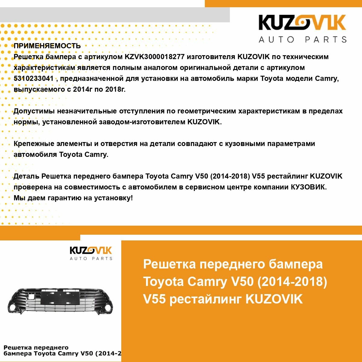 Отзывы на Решетка переднего бампера Toyota Camry V50 Тойота Камри В50 (2014-2018) V55 рестайлинг под российский номер с хром молдингом