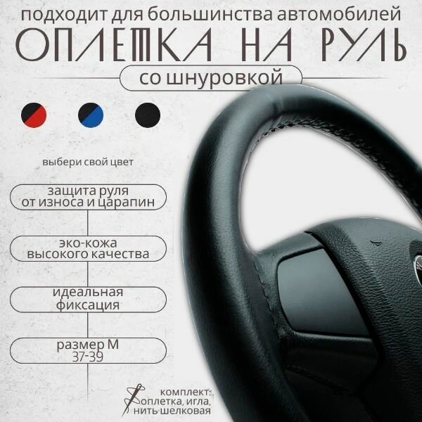 Оплетка на руль автомобиля универсальный чехол из эко кожи с черной строчкой информация: