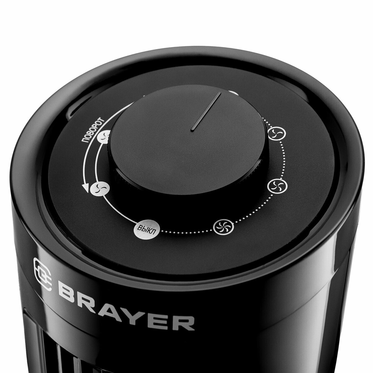 Напольный, колонный вентилятор BRAYER BR4982, 50Вт, 3 скорости, 2 режима, LED-дисплей, пульт ДУ, вращение, высота 107 см