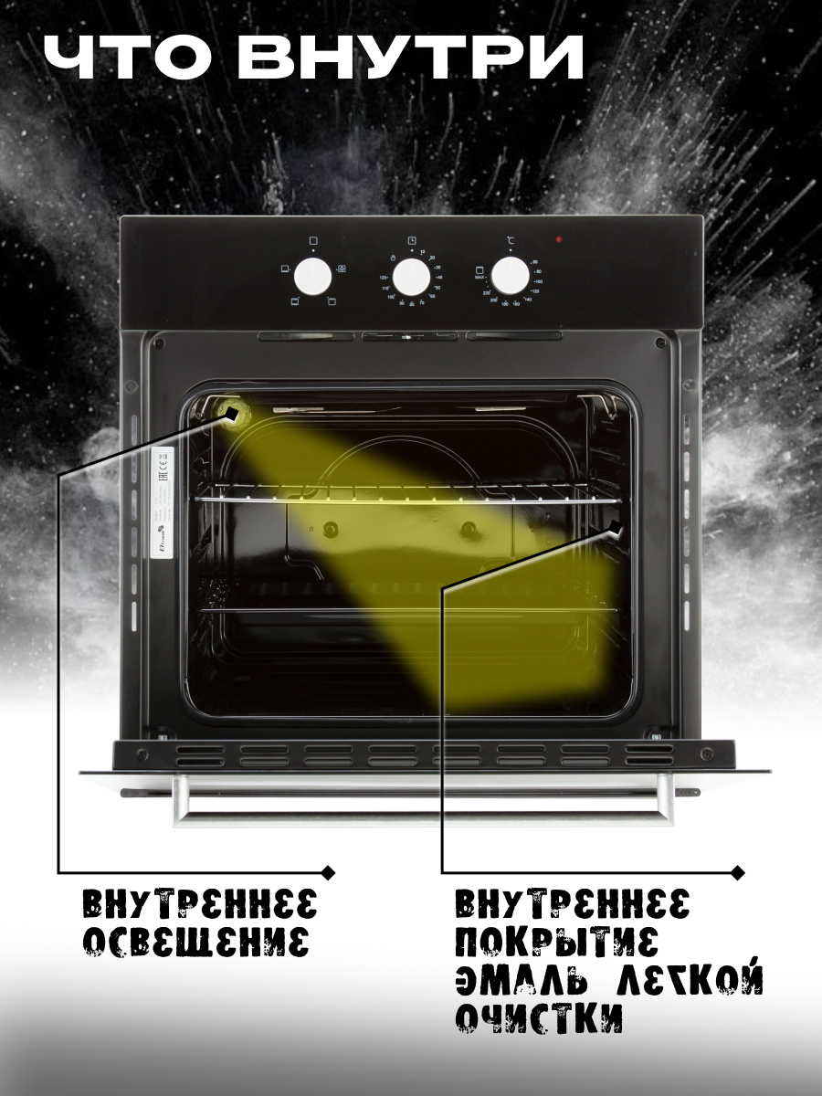 Духовой шкаф встраиваемый LEX EDM 077 C IV, 60 см, с конвекцией, механические ручки, объем 60 л, аналоговый таймер, телескопические направляющие.