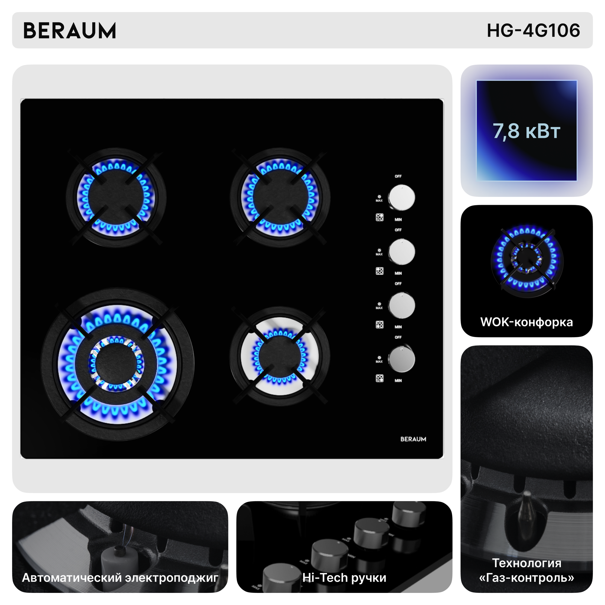Газовая варочная панель Beraum HG-4G106 с газ-контролем информация: