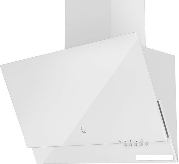 Наклонная кухонная вытяжка LEX MIO G 600 WHITE, 60 см, отделка: стекло, кнопочное управление, LED лампы, белый.