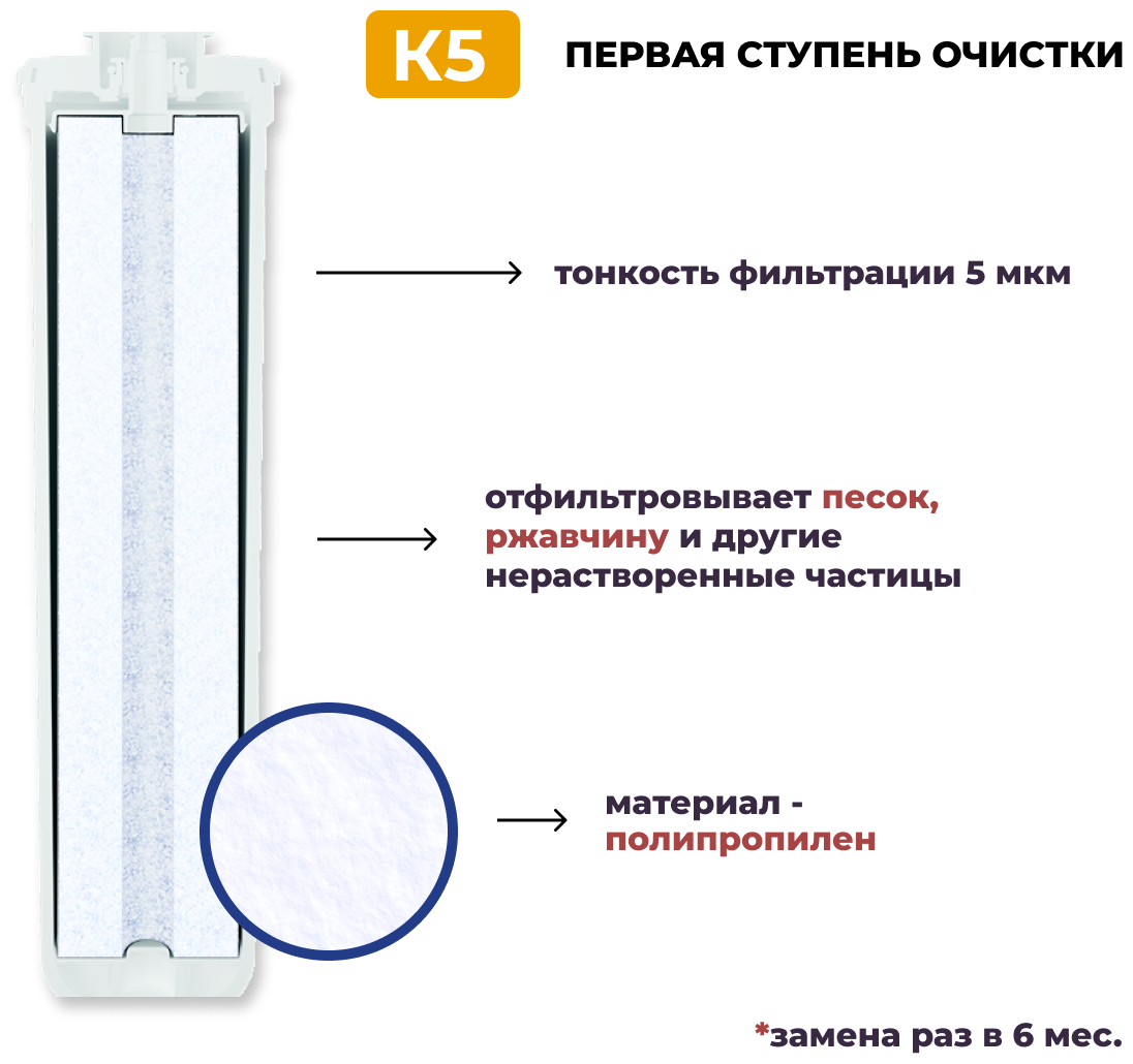 | Функции очистки | механическая фильтрация / минерализация / обезжелезивание / очистка от бактерий / очистка от ржавчины / очистка от свободного хлора |