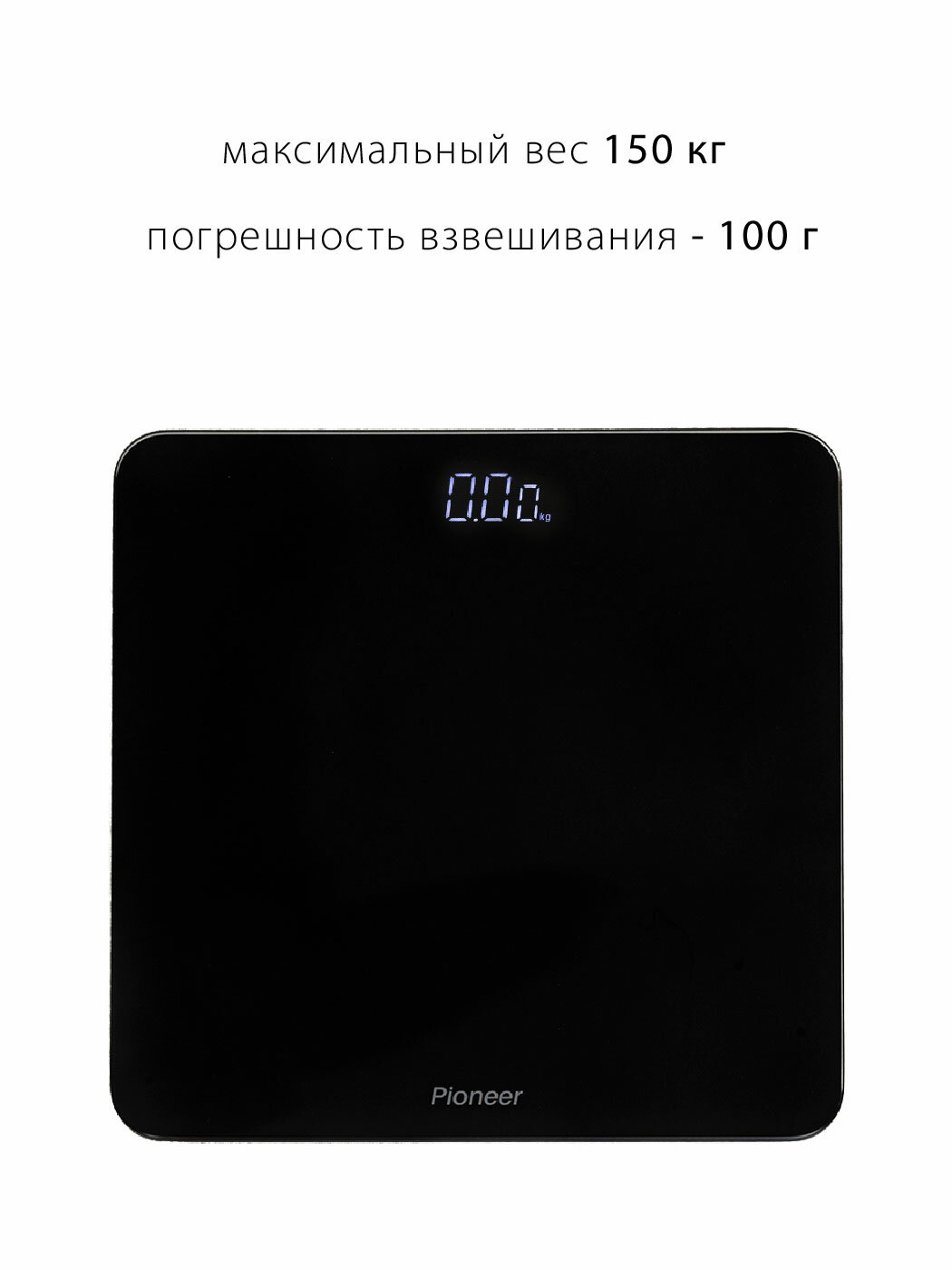 Напольные весы электронные Pioneer с LED-дисплеем и платформой из закаленного стекла, нагрузка до 150 кг, автовыключение информация: