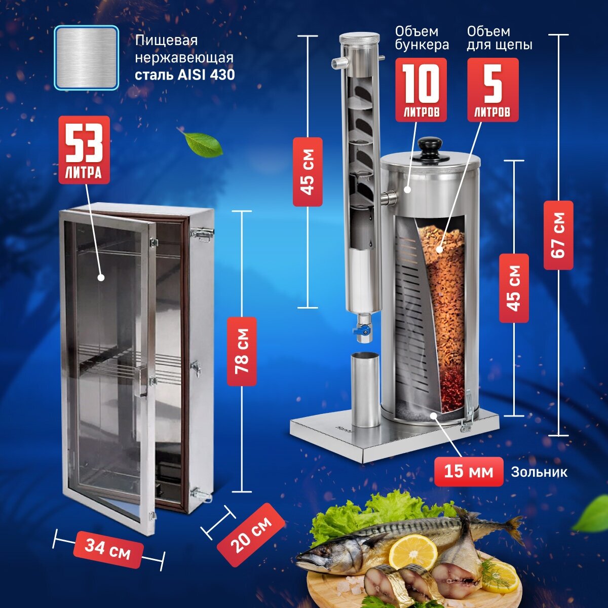| Дополнительная информация | в комплекте: насадка для курицы, сетка формовочная, щепа для копчения, 400 г, книга рецептов; работает на любых типах плит: газовых, электрических, индукционных |