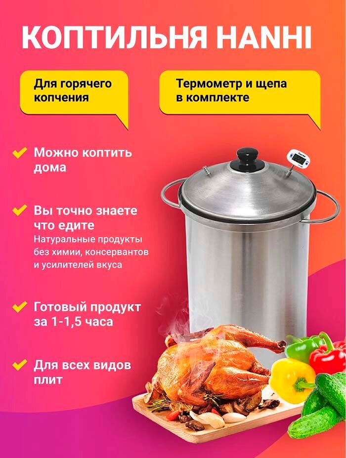 Коптильня домашняя Hanhi на 20 л из нержавеющей стали для горячего копчения информация: