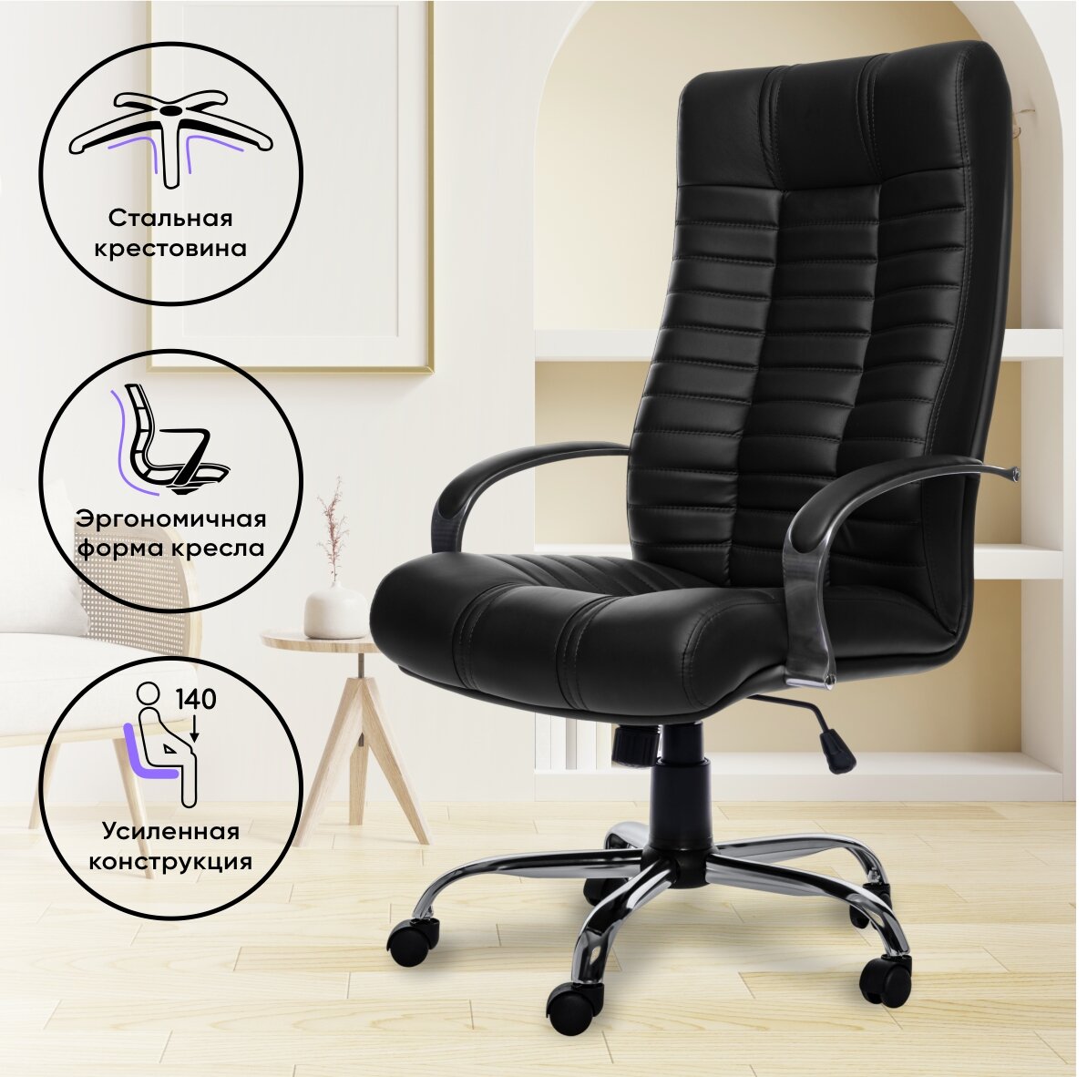 Кресло компьютерное РОСКРЕСЛА Атлант-1 офисное для руководителя, обивка: экокожа, черный 16 814 ₽