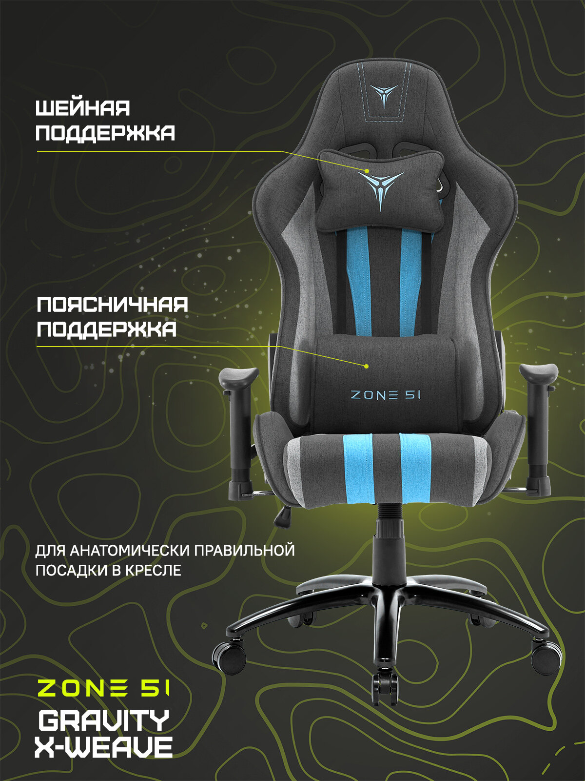 Кресло компьютерное игровое ZONE 51 Gravity Black/Cyan (Z51-GRV-BC) 16 999 ₽