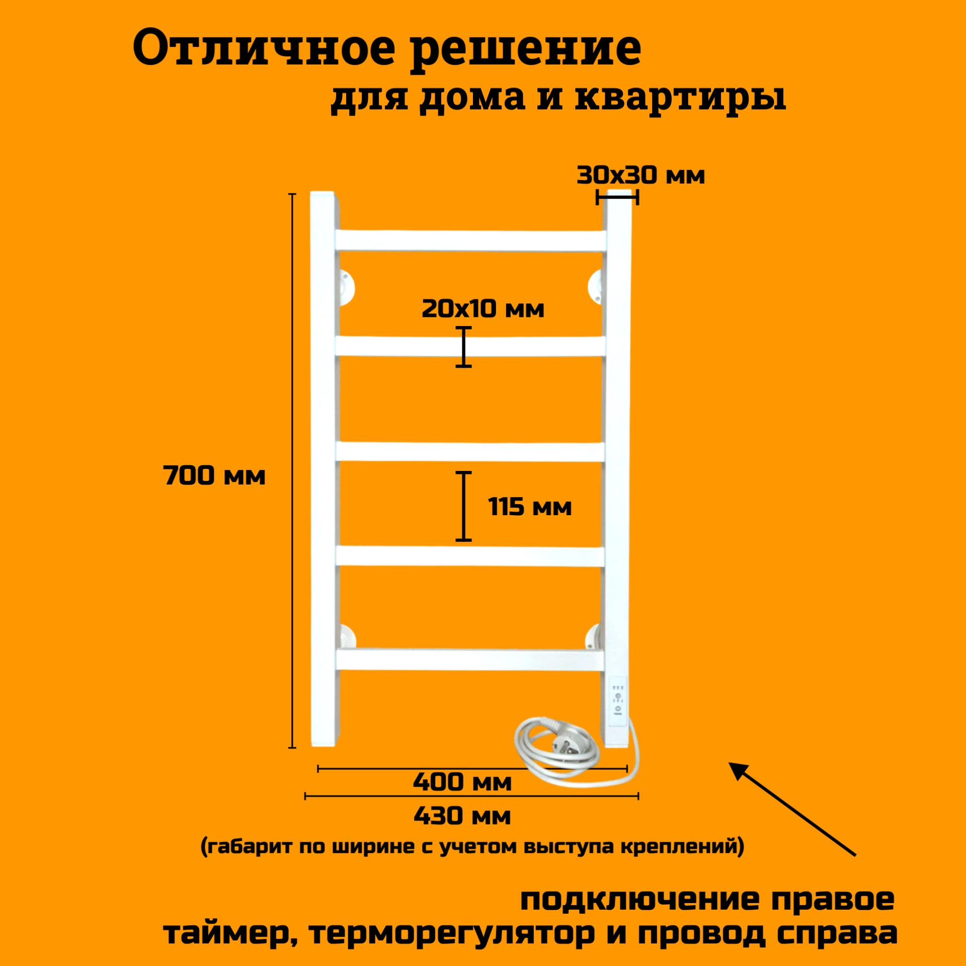 Отзывы на Полотенцесушитель электрический РуДизайн Лесенка профиль 400*700 белый терморегулятор и подключение справа
