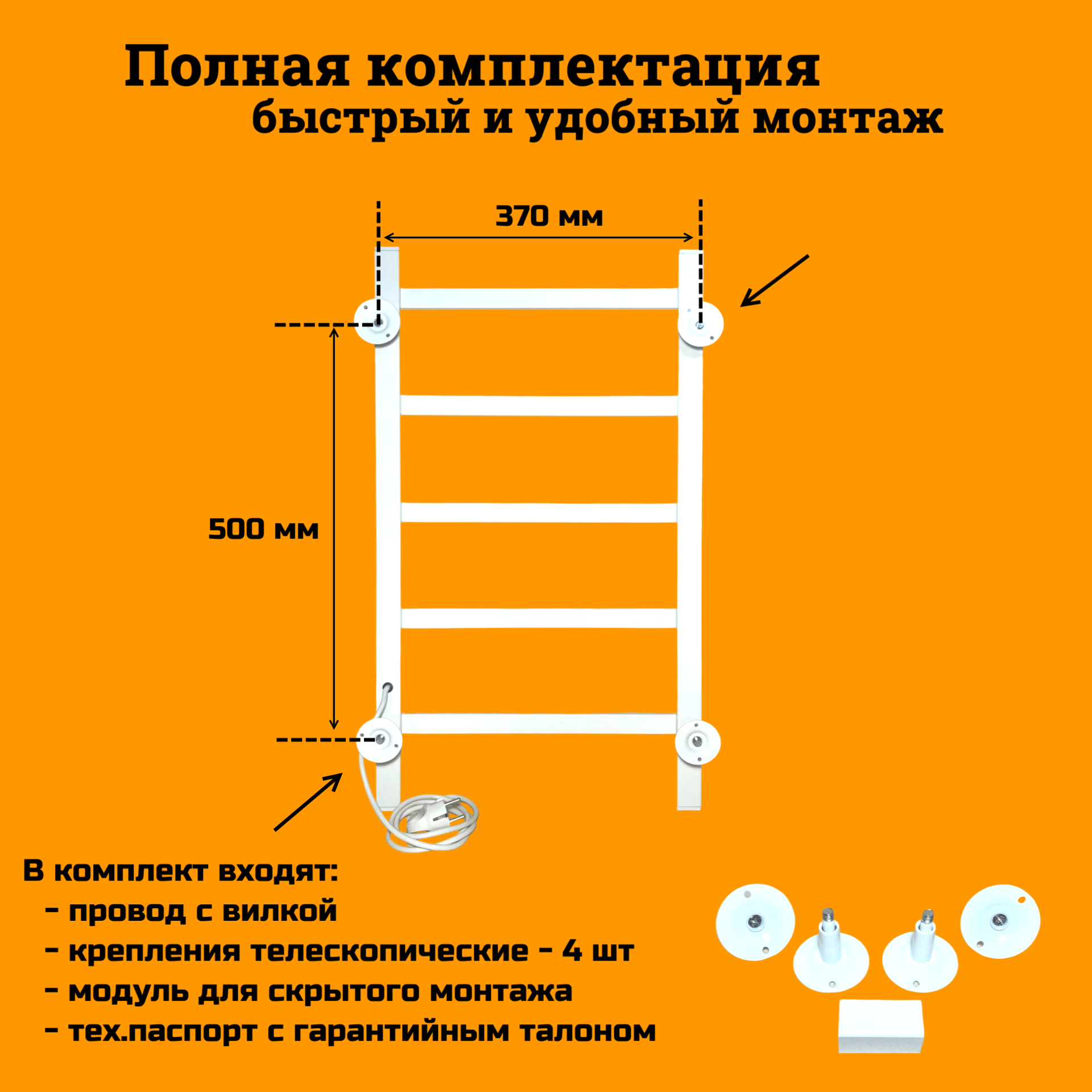 Полотенцесушитель электрический РуДизайн Лесенка профиль 400*700 белый терморегулятор и подключение справа информация: