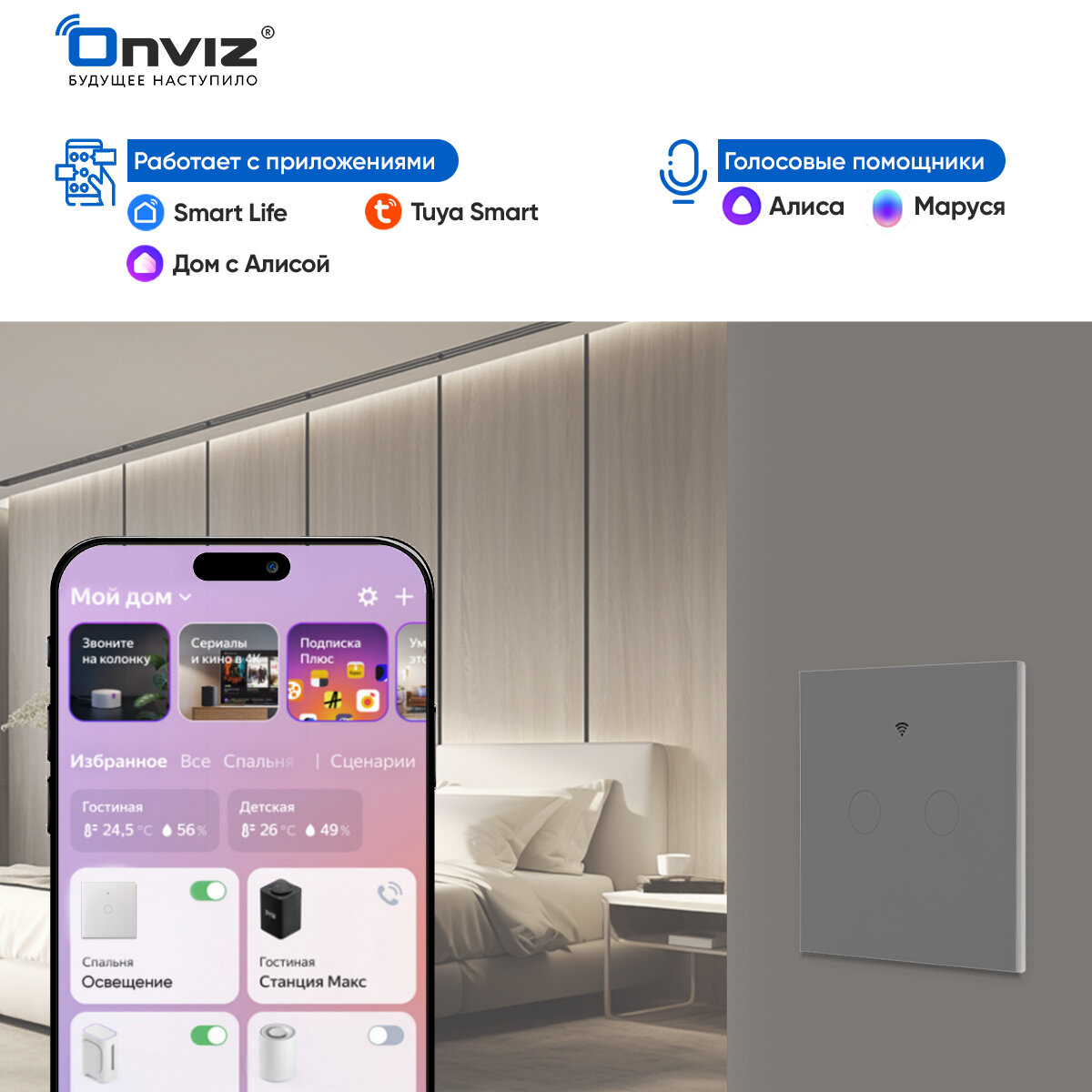 Отзывы на Умный сенсорный Wi-Fi выключатель с Алисой Tuya (серый) 2хклавишный - универсальный без нуля и с нулем