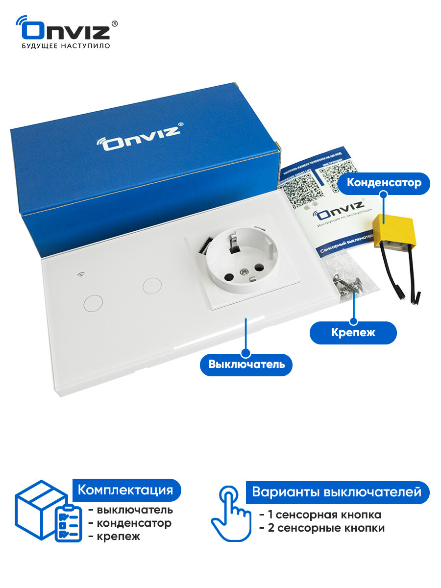 Умный сенсорный Wi-Fi выключатель Tuya (белый) - универсальный без нуля и с нулем - работает с Алисой 1 275 ₽
