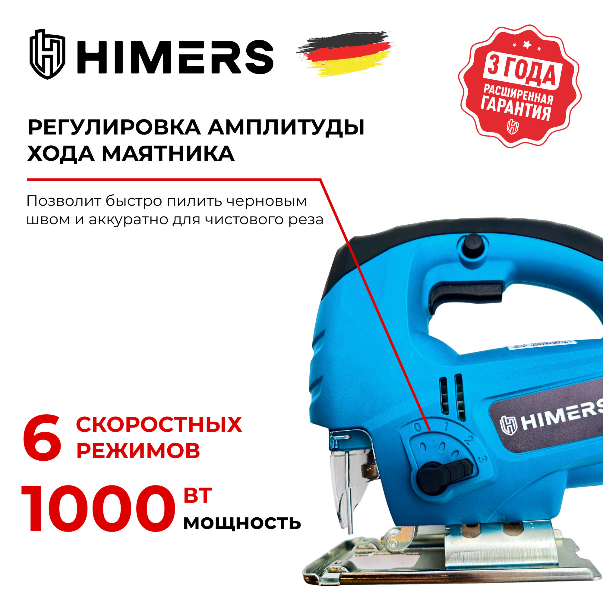 Отзывы на Лобзик сетевой HIMERS LB1000В, 220v, 1000 вт, 3150 об/мин, ход пилки 24мм, лазер красный, подключение пылесоса, 6 скоростей
