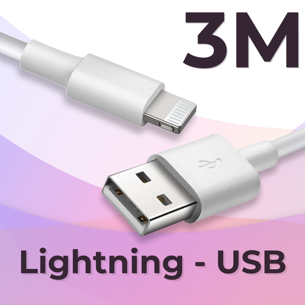 Зарядный кабель (3 метра) USB Lightning на Apple iPhone, iPad, AirPods/ Провод ЮСБ Лайтнинг для зарядки телефона Эпл Айфон, Айпад, Аирподс / Белый информация: