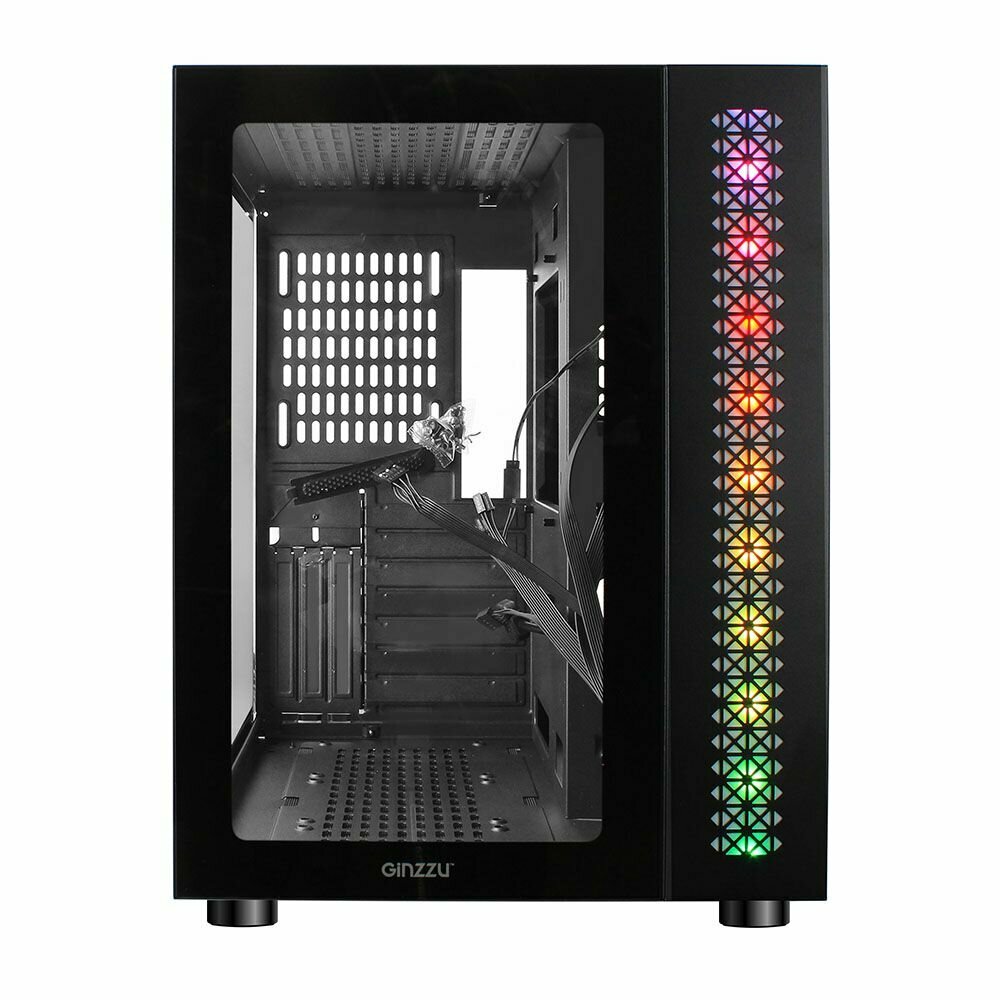 Корпус Ginzzu GL180 закаленное стекло на петлях с магнитным замком, места для водяного охлаждения