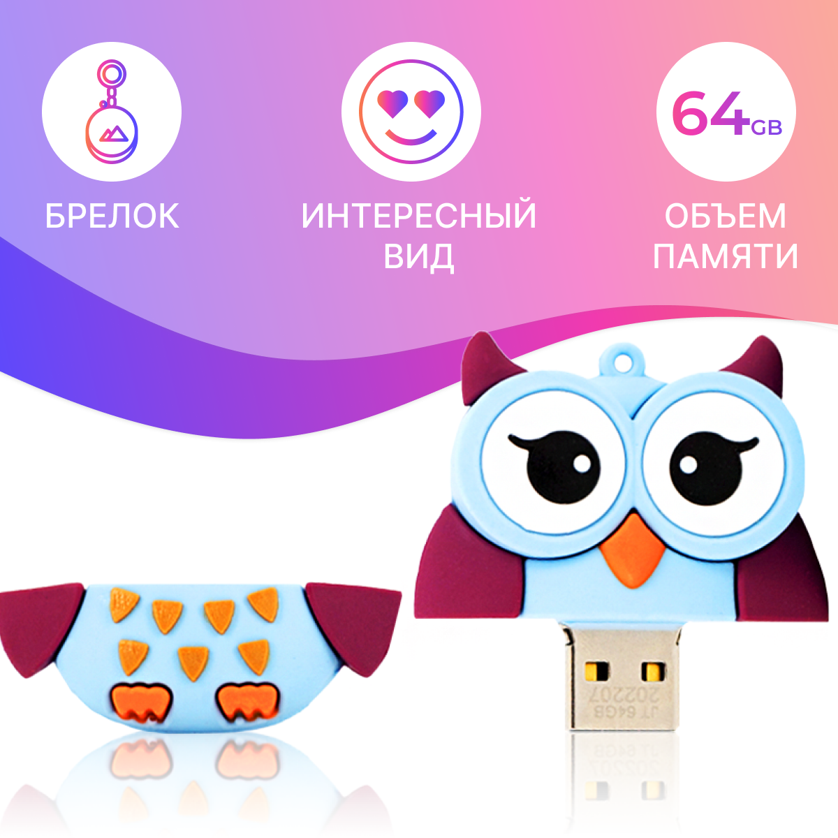 10 цен на Флешка USB 64GB / Оригинальная подарочная флешка ЮСБ 64 ГБ / Флеш накопитель / USB Flash Drive (Сова голубая)