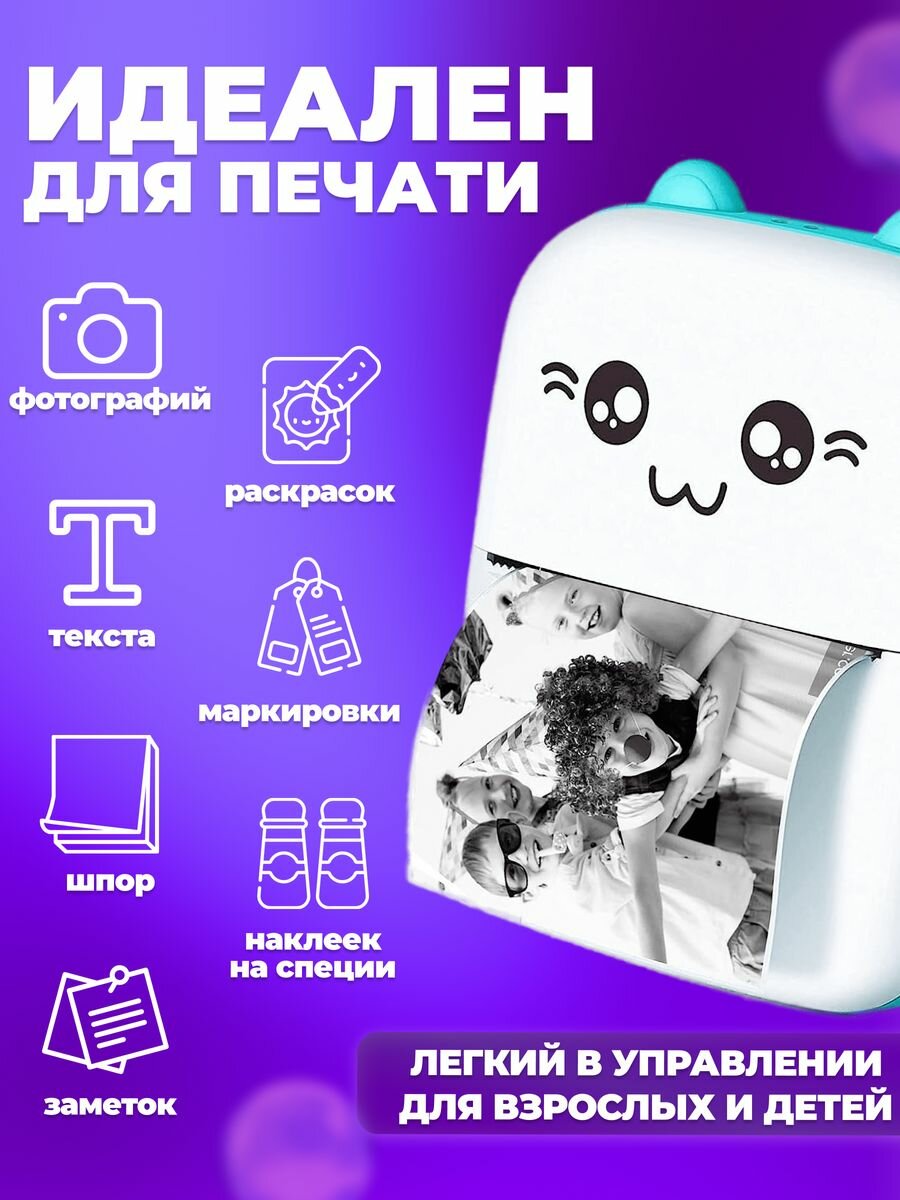 Мини принтер, портативный детский термопринтер для фотографий, этикеток, наклеек, чеков