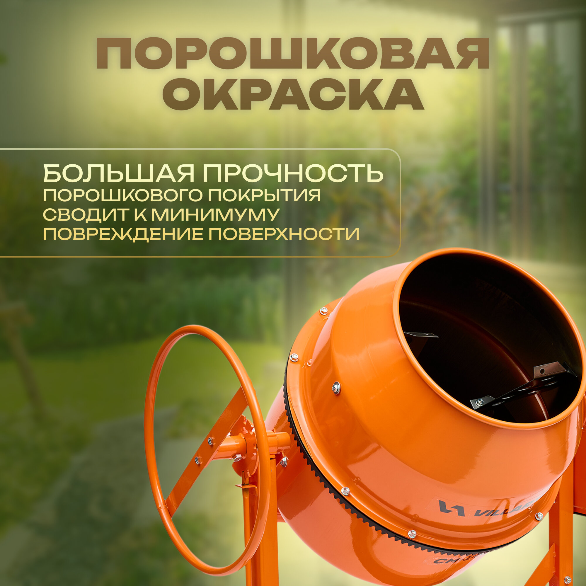 Бетономешалка строительная VILLARTEC СМ-140Р (бак 119л/66л, полиамидный венец, с педалью) информация: