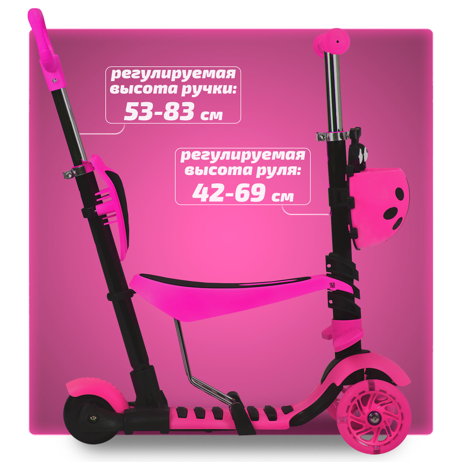 Отзывы на Самокат детский трехколесный 3 в 1 до 5 лет розовый со светящимися колесами