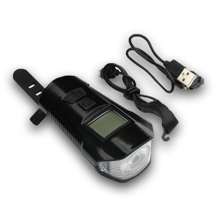 Фонарь велосипедный передний аккумуляторный, водонепроницаемый, 4 режима, сигнал, спидометр информация: