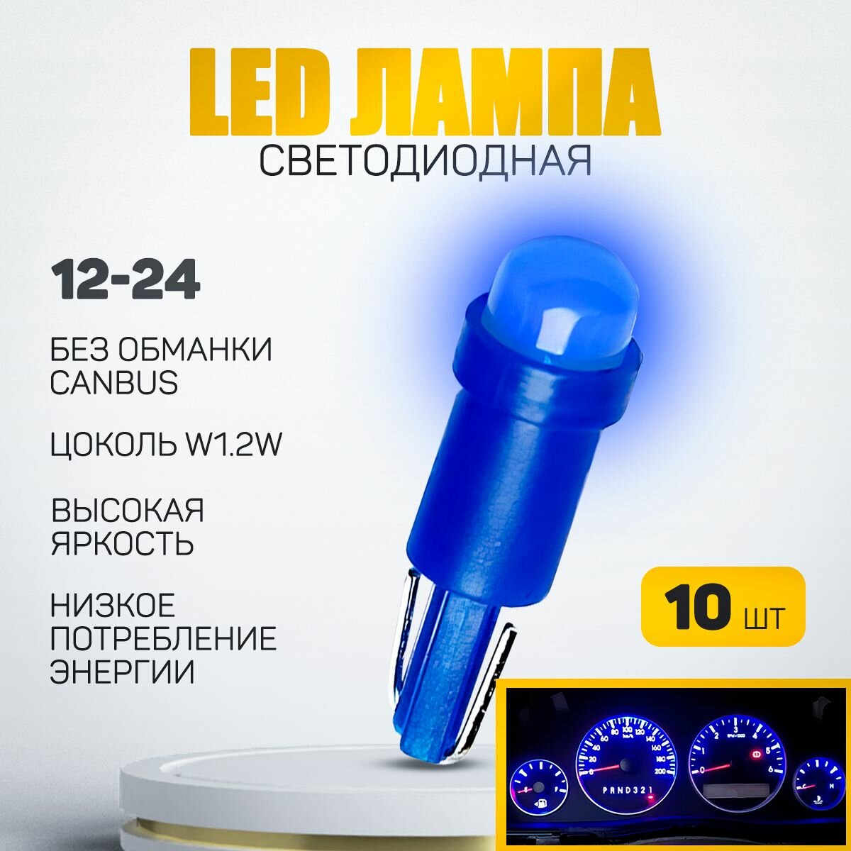 10 цен на Светодиодная лампа T5 W1,2W . Подсветка панели приборов (Синий цвет) 12V LED (10шт)