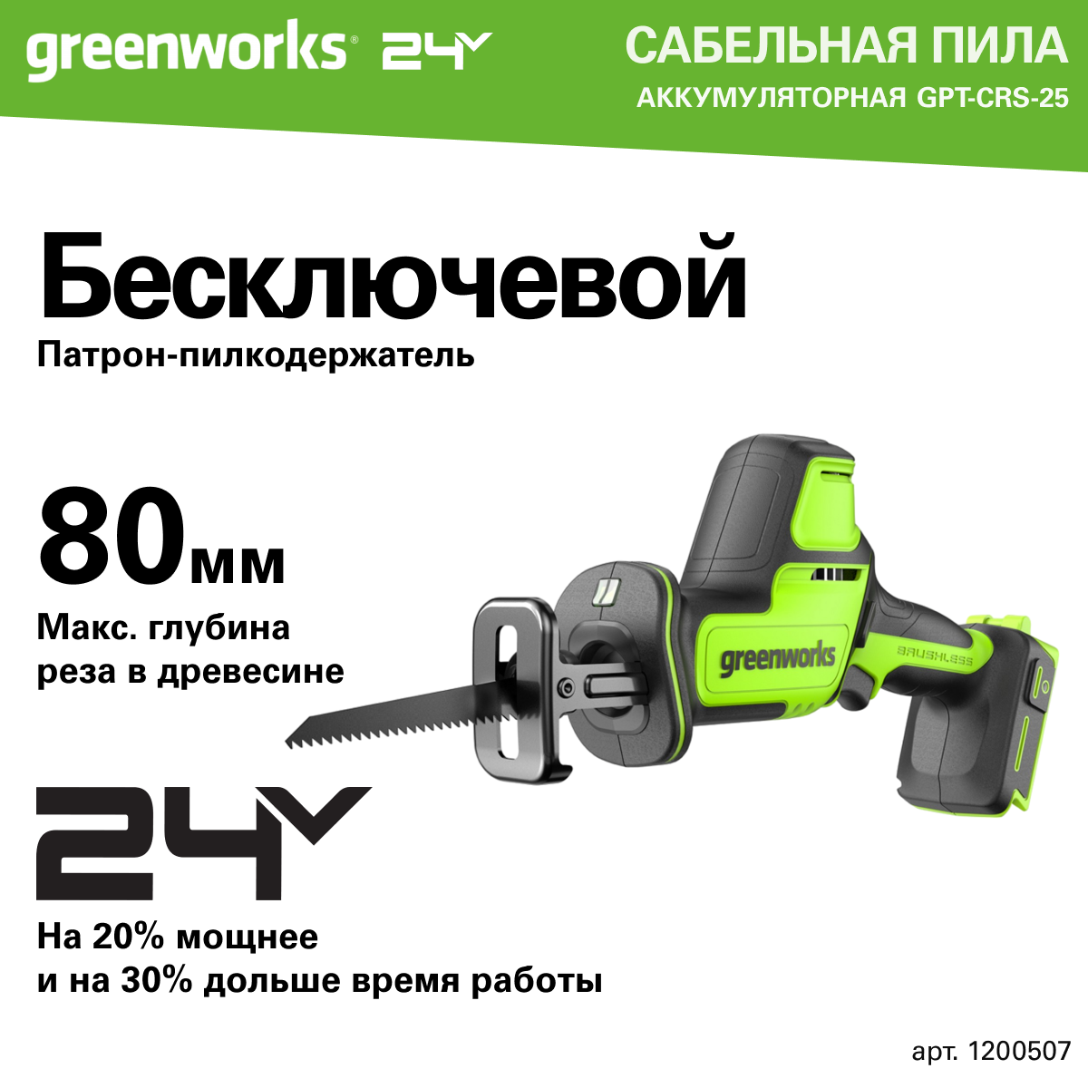 Пила GreenWorks GPT-CRS-25 (1200507) информация: