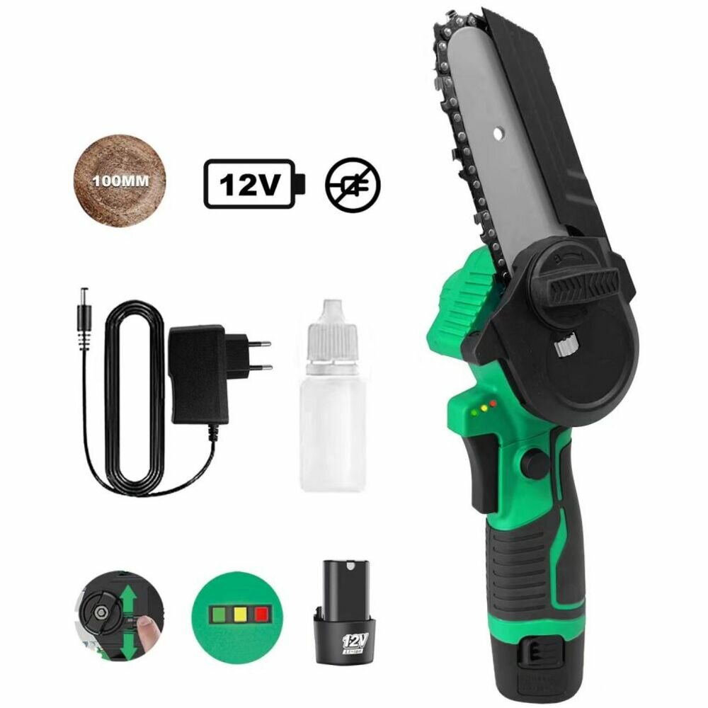 Цепная мини пила аккумуляторная ручная садовая, Портативная цепная аккумуляторная бензопила