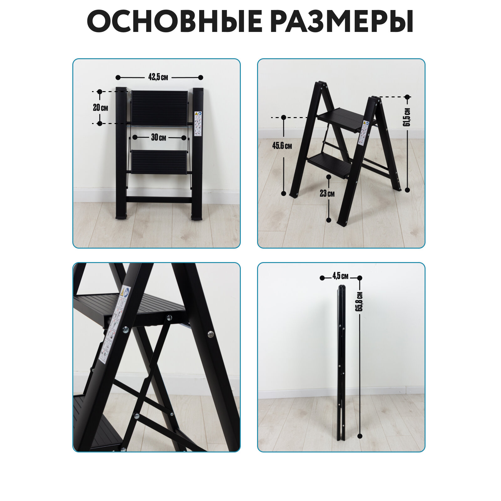 Стремянка "Joy Home" 2-х ступенчатая черная алюминий, пластик 3 999 ₽