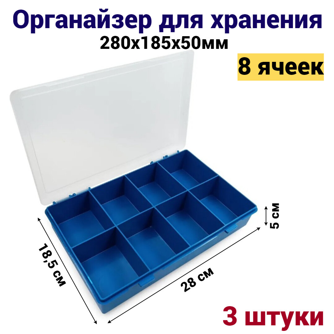Органайзер для хранения Jettools 280х185х50 мм 8 отделений, 3 шт информация: