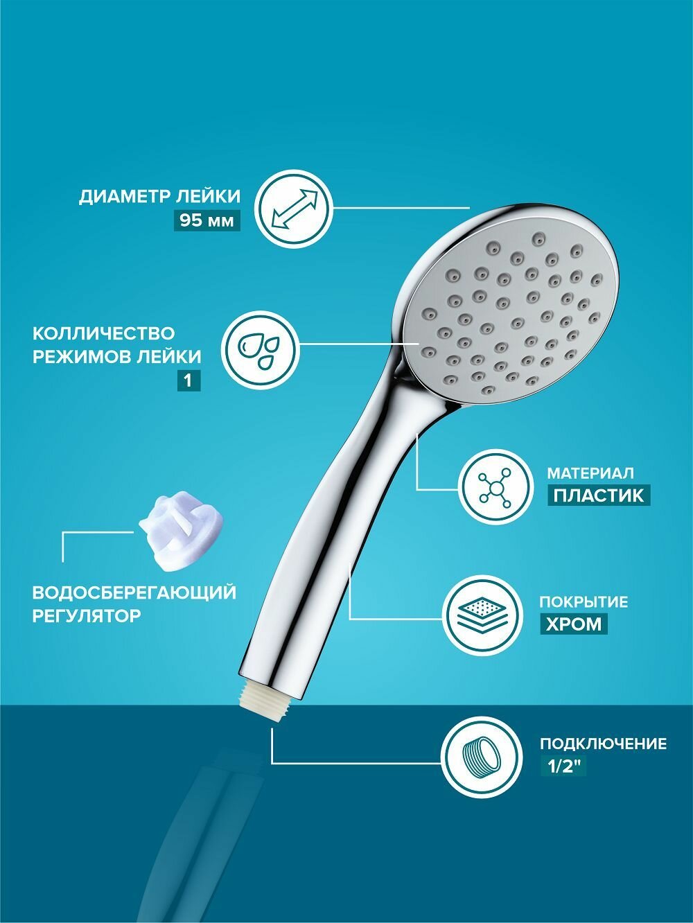 Отзывы на Лейка для душа, РМС LE23, водосберегающая, экономия расхода воды, легкая очистка, пластик