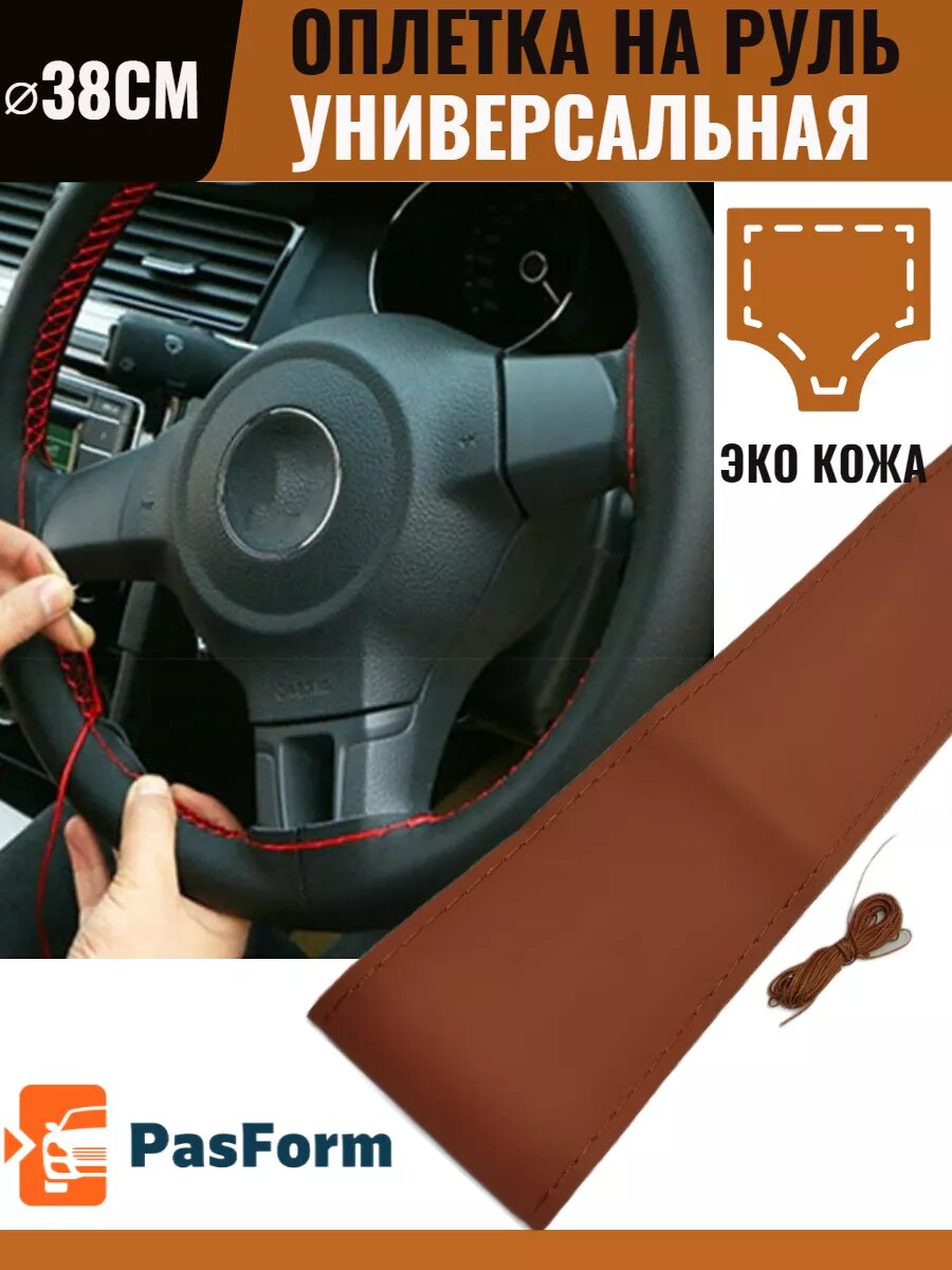 Оплётка чехол на руль автомобиля сшивная ⌀38 см коричневая информация: