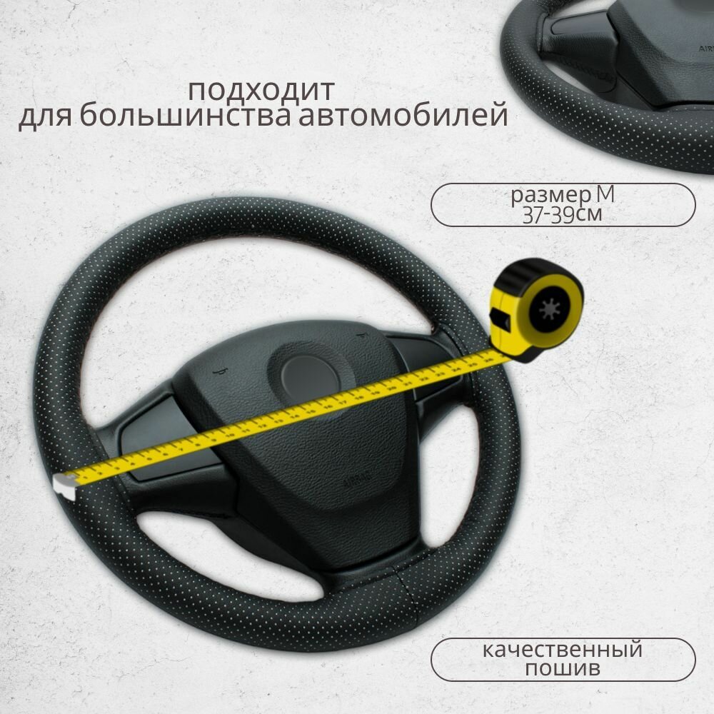 Чехол оплетка на руль из экокожи с перфорацией, размер M черный с черной нитью 414 ₽
