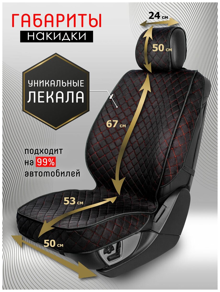 10 цен на CarCape/ Комплект накидок на весь салон автомобиля из алькантары с боками и юбкой/ авточехлы универсальные. Модель SOFIA+PK. Черный, красная нить